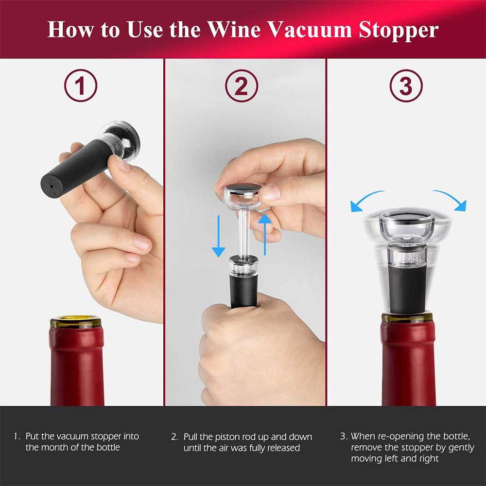 3. The stopper helps to extract air from bottle to preserve wine or ip to 7 days.