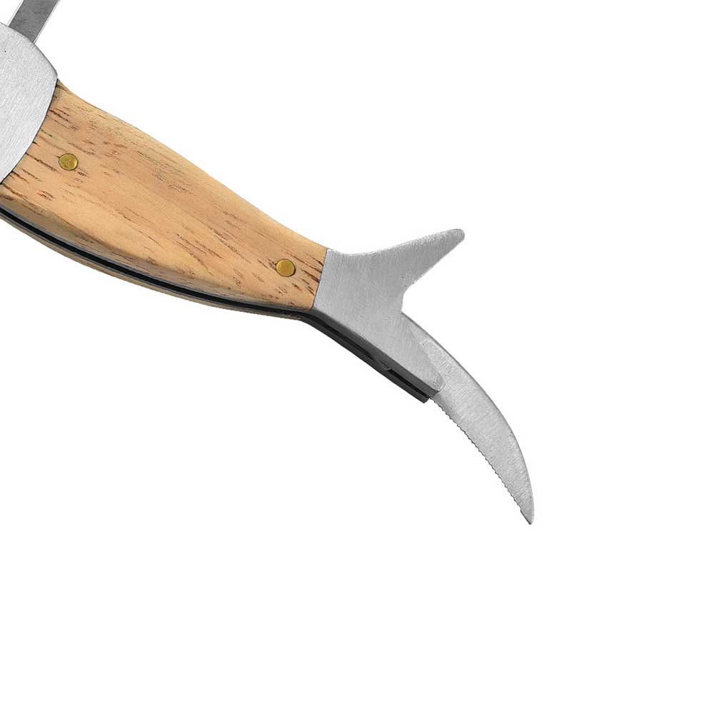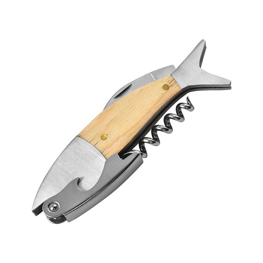 Made of stainless steel and oak wood with foil cutter and bottle opener, our sleek and stylish fish corkscrew is perfect for home or camping. It’s a beautiful piece, and it works as far as opening beer bottles without issue
