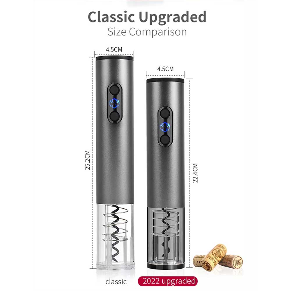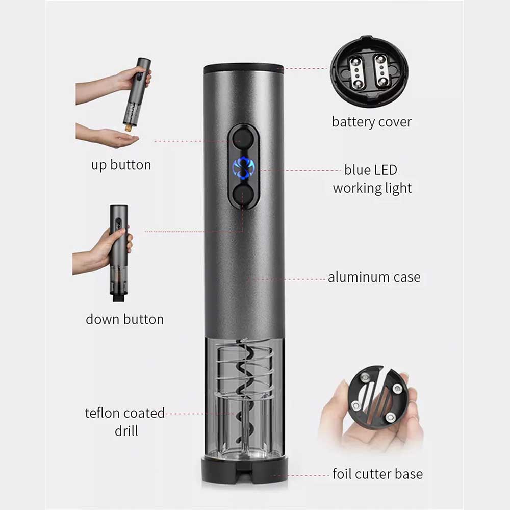 1. Removes Corks Effortlessly. The electric wine opener is with metal body, powerful and easy-using. By pressing the “Down” and “Up” button, it can remove the cork in 8 seconds without break the cork. Durable and fast, perfect for red, white, rose wine, champagne, and others.