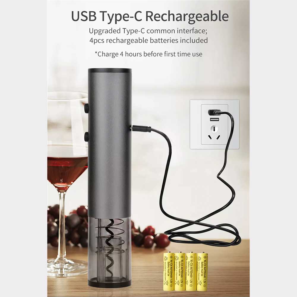 Battery Operated Wine Opener*1, Wine Pourer*1, Wine Stopper*1, Foil Cutter*1, Manual*1, Color Box*1
