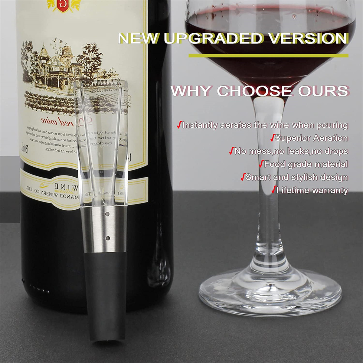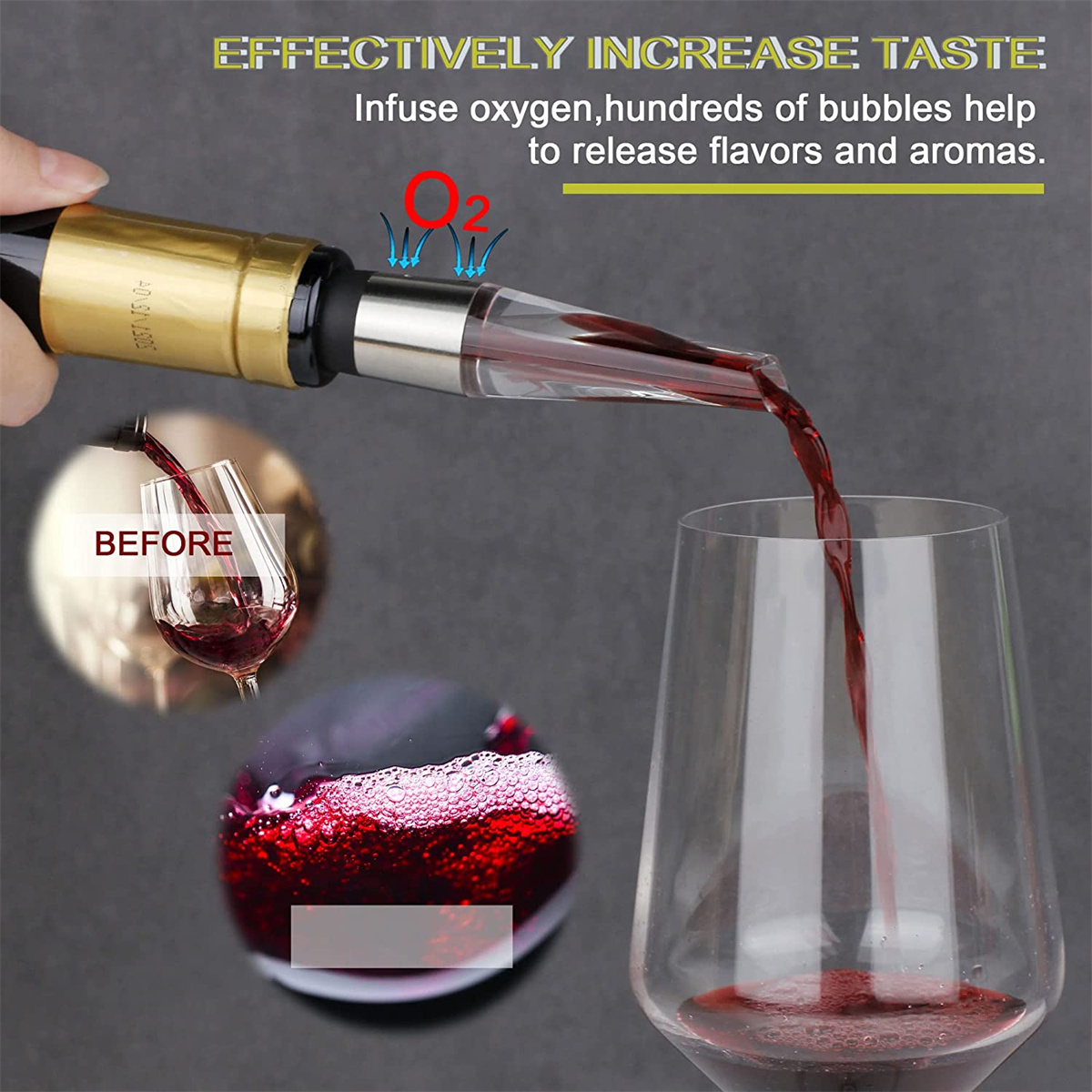 Perfectly Aerate Your Wine, The wine aerator pourer infuses the OPTIMAL amount of oxygen into your wine using the Bernoulli effect so that you can taste the nuances in your wine. Double the value of your wine by simply pouring yourself a glass! Aerate you wine in seconds, not hours, Makes for perfect wine gifts!